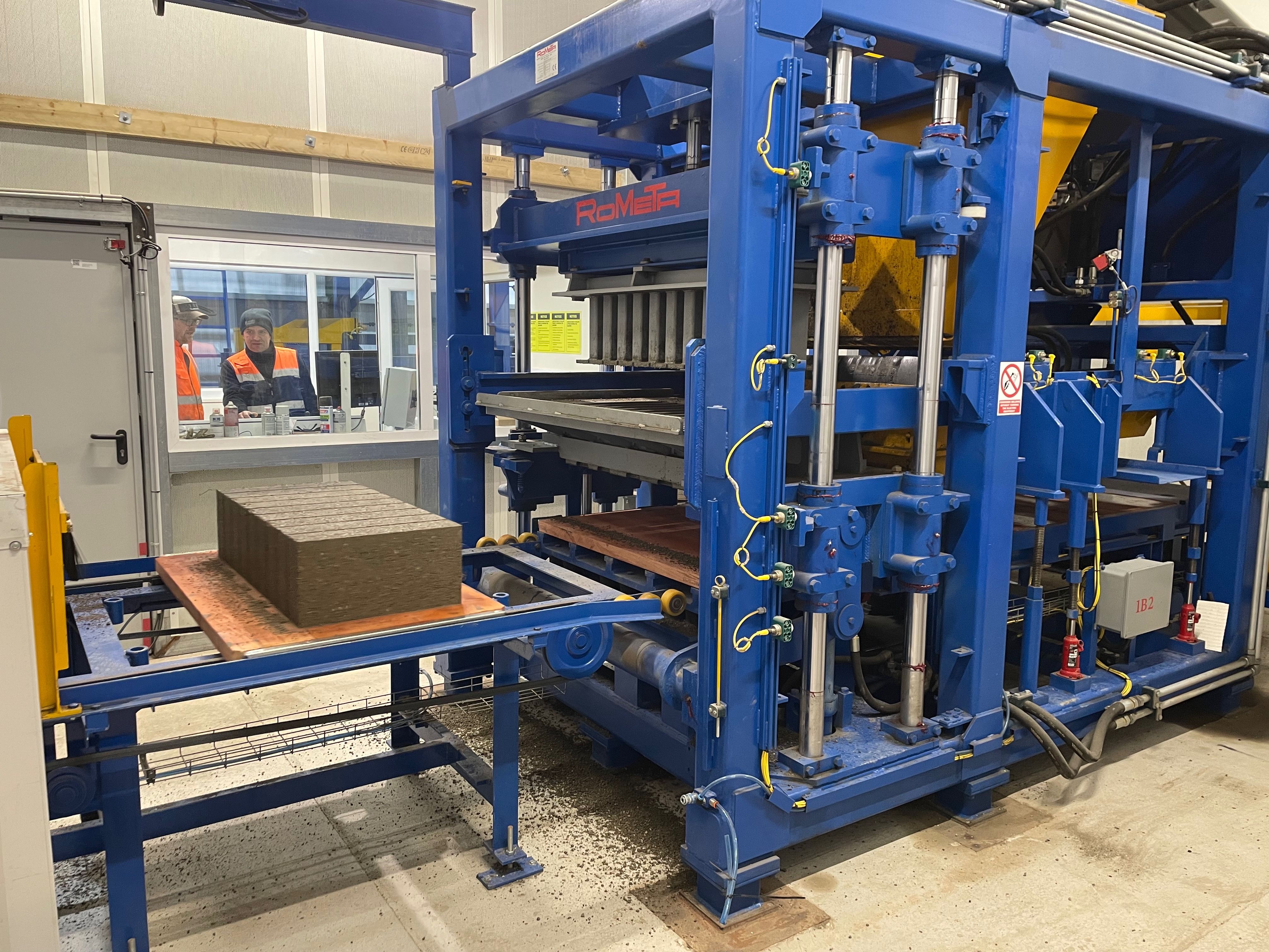 En el corazón de la planta se encuentra la máquina vibradora Rometa 2030, equipada con control mediante variador de frecuencia, lo que permite al operario ajustar los parámetros de vibración con precisión. Esta configuración basada en racks permite una automatización completa, reduciendo significativamente la inversión necesaria en obra civil e infraestructuras de curado.